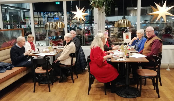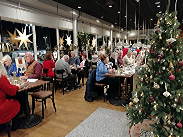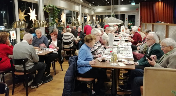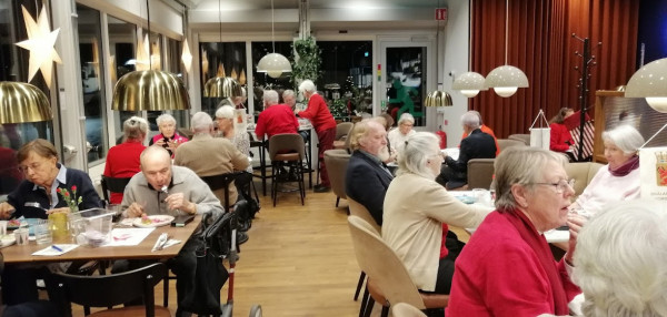 Mingel kring glögg och pepperkakor. Jullandgång, julstämning och lotteri.